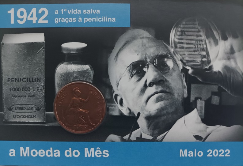 2022- A moeda do mês – Maio 2022 – 1ª vida salva graças à penicilina – Moeda one penny 1940