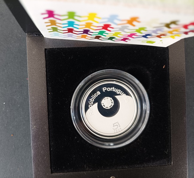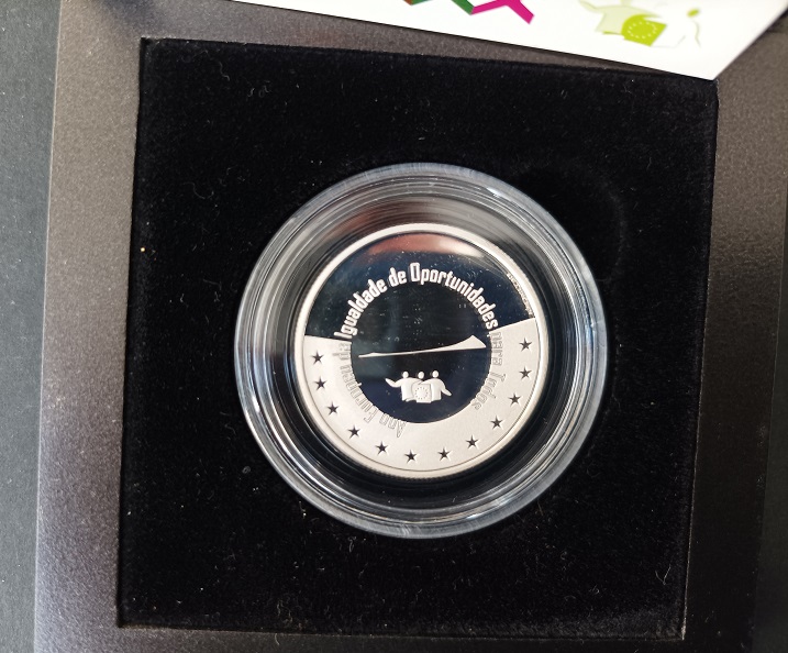 Rerverso: A legenda «Ano Europeu da Igualdade de Oportunidades para Todos» circunscreve a face da moeda, estando, ao centro, apresentadas três figuras que são a base de suporte do símbolo da EU e, no campo inferior, dispostas, em forma semicircular, as estrelas alusivas da UE.