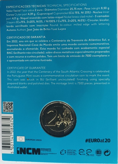 Moeda 2€ – Centenário da Travessia do Atlântico sul