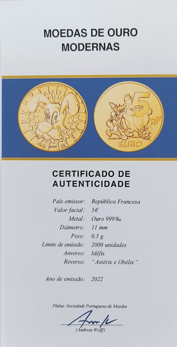 Moedas de ouro modernas (2021-2022) Moeda de ouro 5€ – Asterix , Obelix e Idéfix