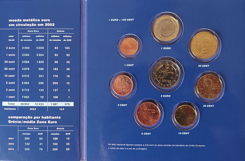15 anos de euro. O arquivo monetário da europa – moedas da Grécia, pertencem a uma coleção composta pelos países da união monetária europeia.