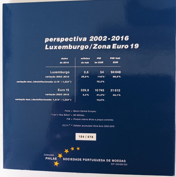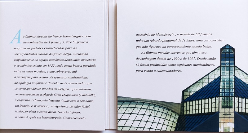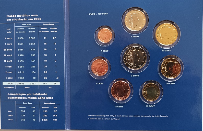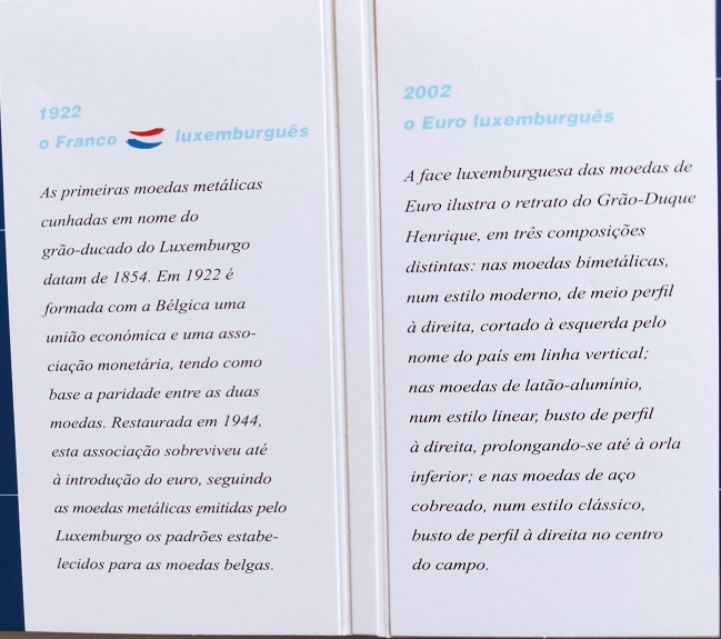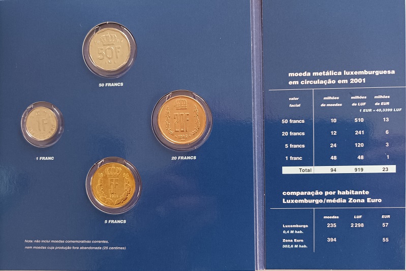 Neste arquivo monetário da Europa apresenta-se as moedas do franco luxemburguês de 1, 5, 20 e 50 francos. Apresenta-se, também, as moedas de Euro ilustrando o retrato do Grão Duque Henrique.