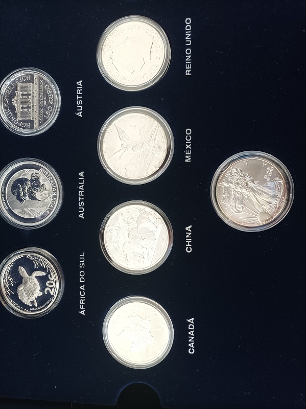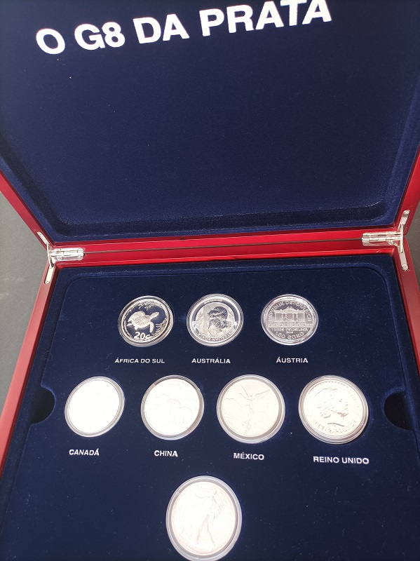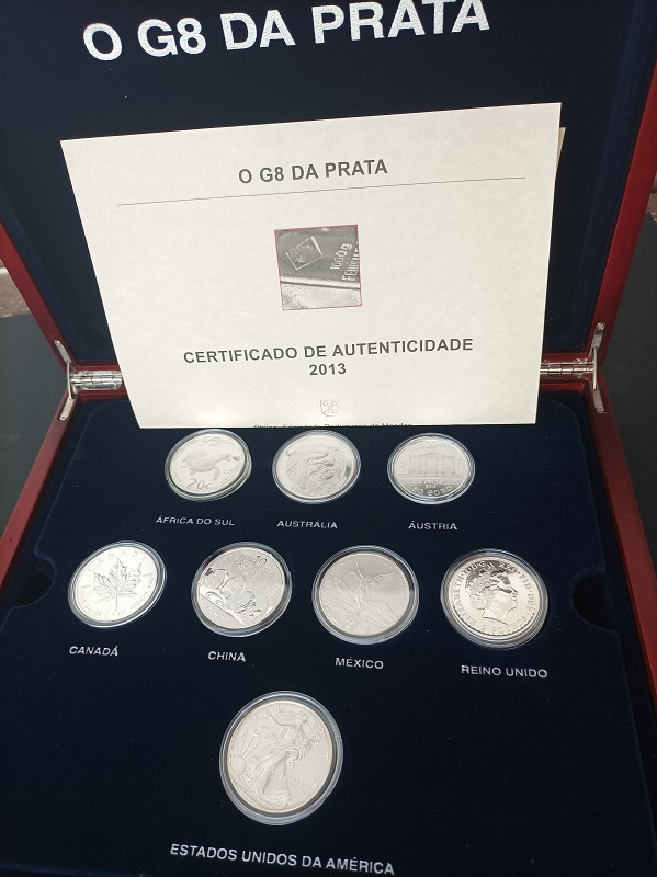 Coleção de oito moedas de 2013, cunhadas em prata, na condição Proof , dos seguintes países: